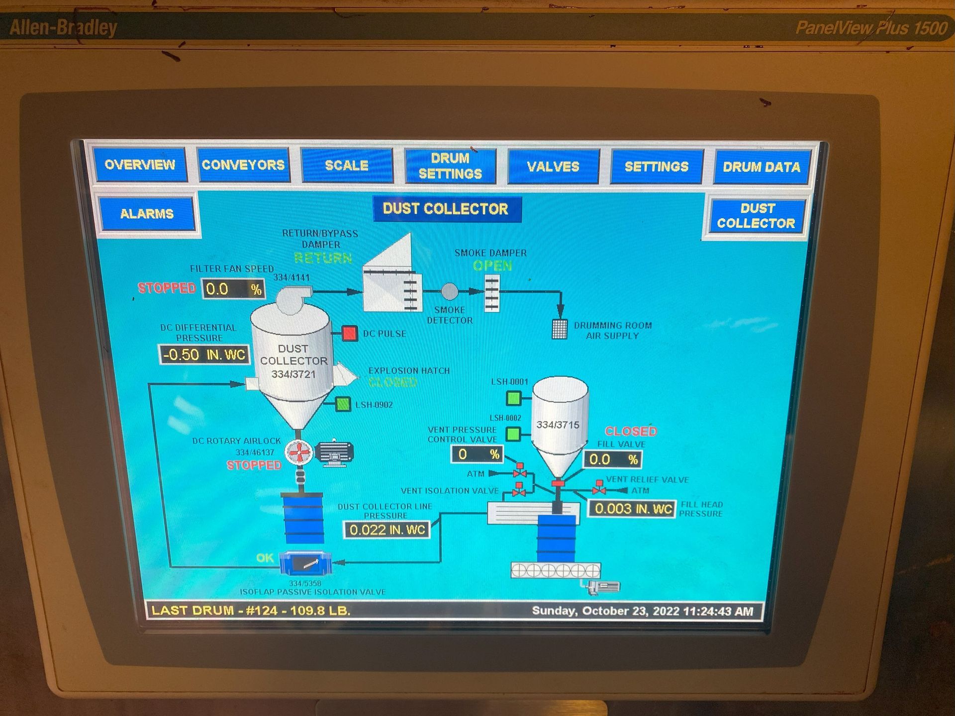 A key element to the success of the filling system was the instrumentation and minute vacuum control for prevention of fugitive dust while maintaining fill accuracy.