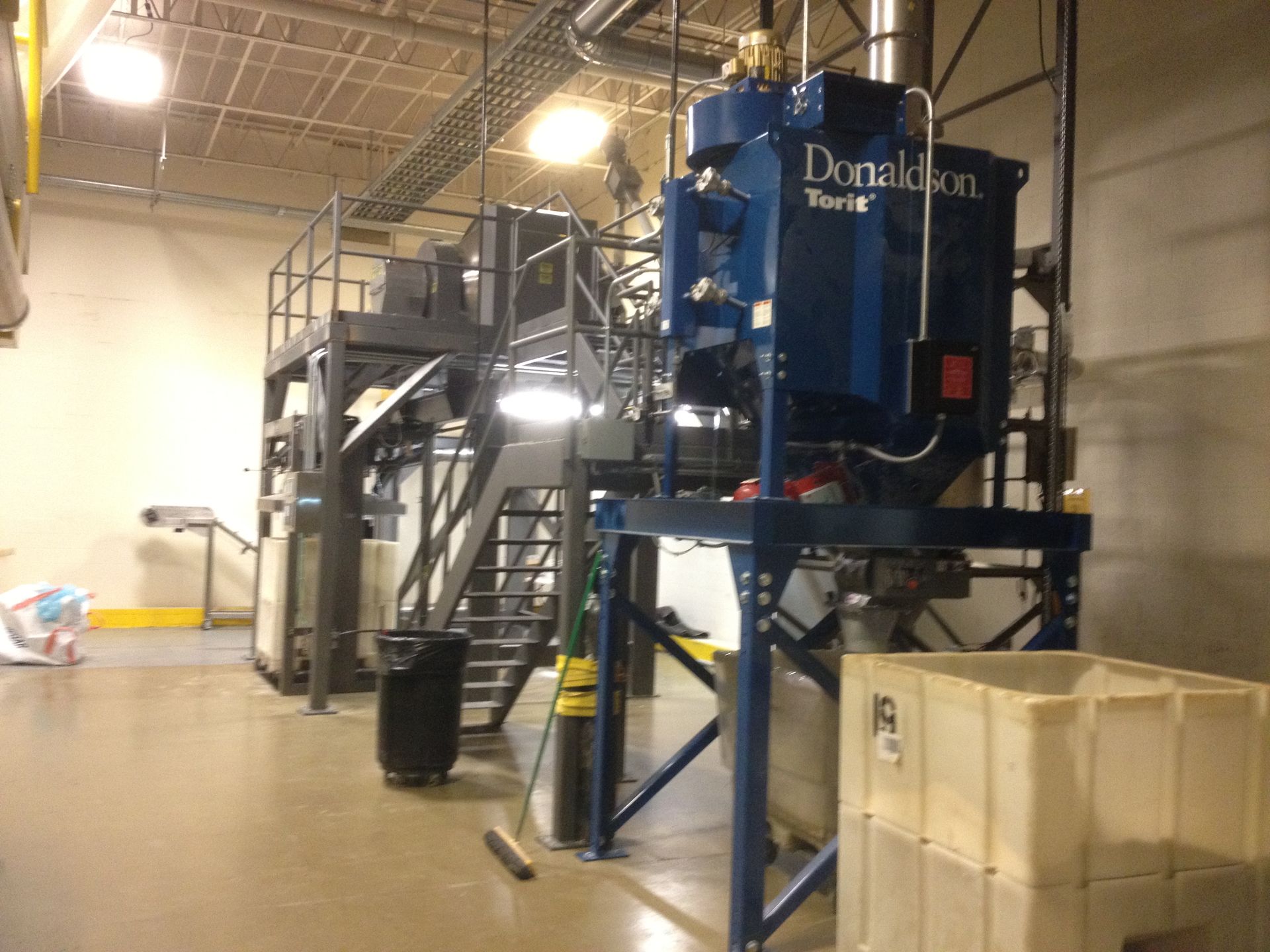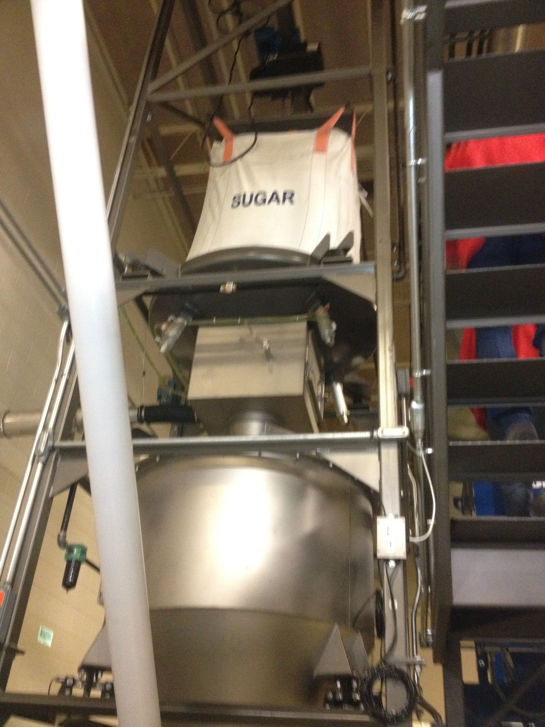 The system consisted of a bulk bag unloader with hoist for the granulated sugar with a flex auger feed to Munson rotary blender. Once the proper blend was achieved the mixer discharges into a dual loading station for either bulk bags or plastic totes.