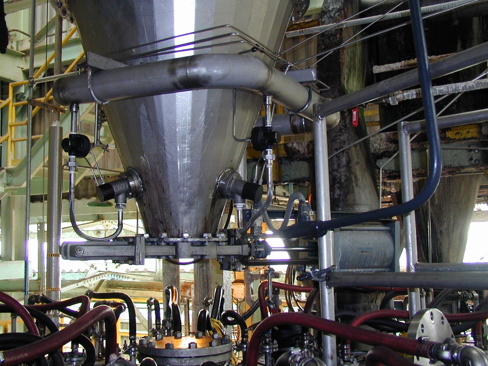 Matrix Engineering was consulted and hired to rehabilitate a pneumatic conveying system for handling phosphorus pentoxide (phosphoric acid anhydrous). This material is very corrosive and extremely hygroscopic - reacting with water to form hot phosphoric acid. Matrix provided the mechanical, electrical design along with the control system integration for the project. A dense phase transporter was rebuilt for transporting the material to a bed hopper which was vented to an existing scrubber system. Matrix also specified and provided the controls for a gas compressor which took existing dry combustion air at 25 psi and compressed to 80 psi for use in our dense phase system. Nitrogen purges were also designed for keeping the system dry between batches as well as providing a moisture free blanket over the bed hopper. Much of the design was centered around keeping the system dry and not sticky, the product dry and free flowing, and keeping the air supply dry and clean. Design efforts also emphasized maintenance and the ability to wash down and dry the system easily after a production cycle.