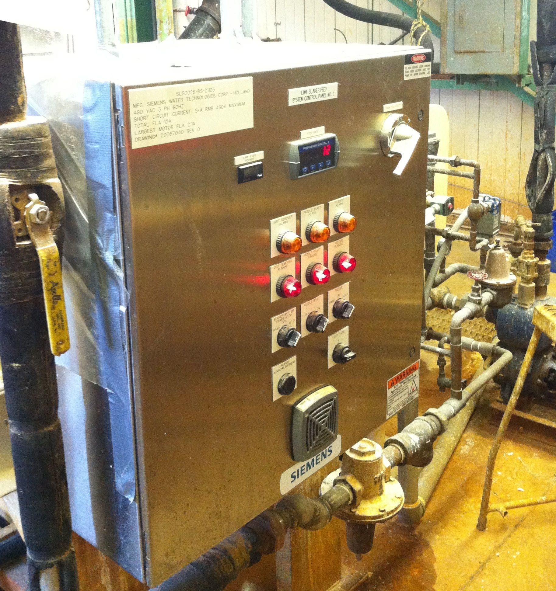 Matrix Engineering provided the electrical and mechanical design for (2) new hydrated lime feed control systems for USEC’s water softening facility. Each new lime feed microprocessor control system operated a (33 -667) lb/hr weigh belt feeder, which monitors hydrated lime feed rates, and also a (50-1000)lbs/hr lime slaker, which transformed the lime into a slurry to be pumped to aid in pH regulation of the plant’s process water. Each microprocessor control system involved configuring a set-point controller and SCR controller for each lime system to maintain consistent flow rates. Each control system also included a visual display for lime feed in pounds, feed rate, and alarm indication lights for upset feed conditions.